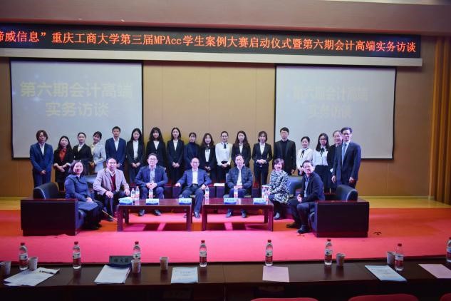 11月16日上午,会计学院在田家炳50209报告厅隆重举行“谛威信息”买球(中国)官方网站第三届MPAcc学生案例大赛启动仪式暨第六期会计高端实务访谈。副校长兼会计学院院长宋豫教授,会计学院党委罗惠玉书记等学院领导,大信会计师事务所西南业务总部副总经理刘建秋先生、浪潮集团重庆公司副总经理王宏波先生、重庆渝富资产经营管理集团有限公司集团总法律顾问彭作富先生、天健会计师事务所重庆分所授薪合伙人杨朝玉先生、重庆市审计局企业审计处副处长汪宇鸿女士等10余名事业导师参加了会议。