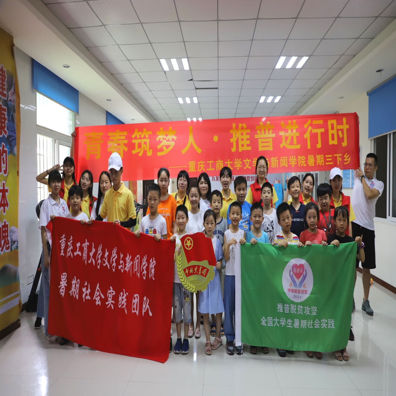 扶贫先扶智,扶智先通语,为积极响应国家推广普通话的号召,7月14日-7月18日,文学与新闻学院暑期“筑梦七彩”推普实践团来到九龙坡区九龙湾社区开展“青春筑梦人推普进行时”的社会实践活动,通过实践团的社会宣传作用,全力推广普通话,提高国家文化软实力。