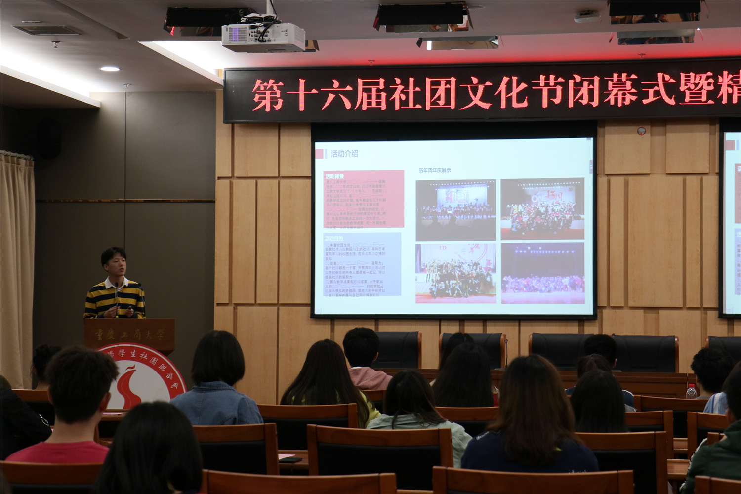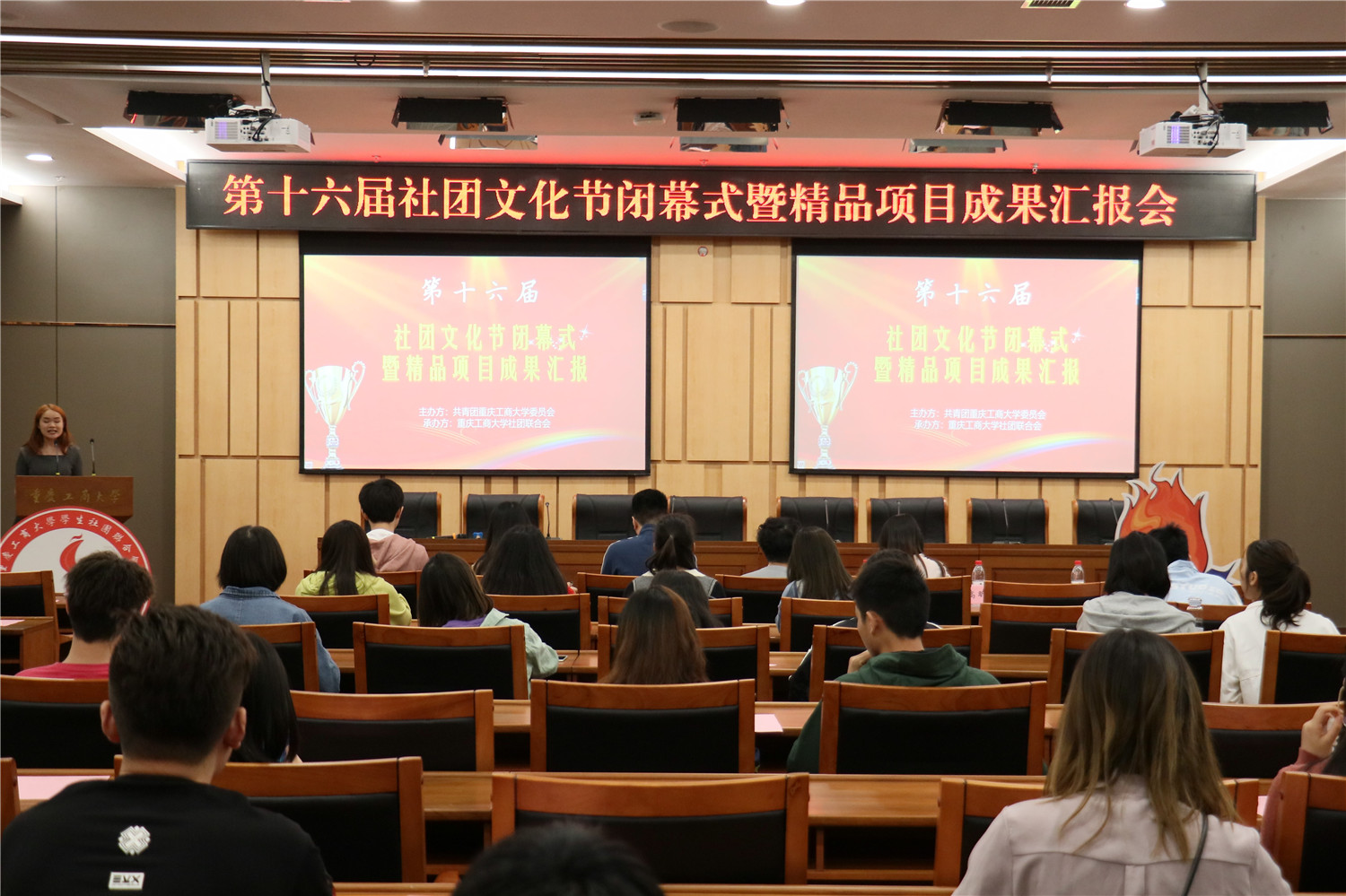 5月29日,第十六届社团文化节闭幕式暨社团精品项目成果汇报会在南岸校区新图书馆第一会议室举行。校团委陆嘉副书记、陈琛老师,学生社团联合会、各学生社团代表共计70余人参加。