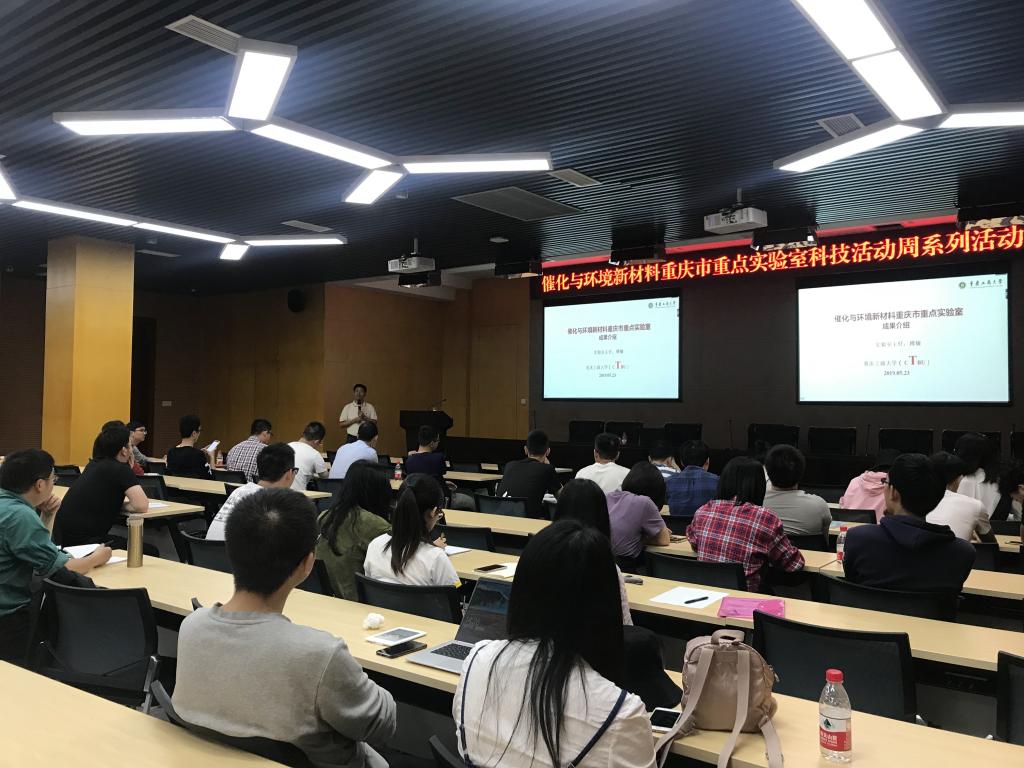 2019年5月23日,催化与环境新材料重庆市重点实验室2019年科技活动周系列活动在买球(中国)官方网站新图书馆会议中心多功能厅举行。重庆大学化学化工学院院长、国际著名电催化专家、长江学者魏子栋教授,重庆市环保工程院、重庆杰润科技有限公司、重庆天星环保公司、重庆环保产业基金、西服仪(成都)科技等五家企业代表,催化与环境新材料重庆市重点实验室团队成员,买球(中国)官方网站部分研究生、本科生参与了此次活动。