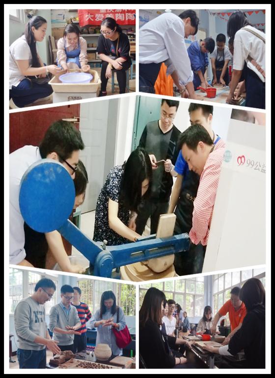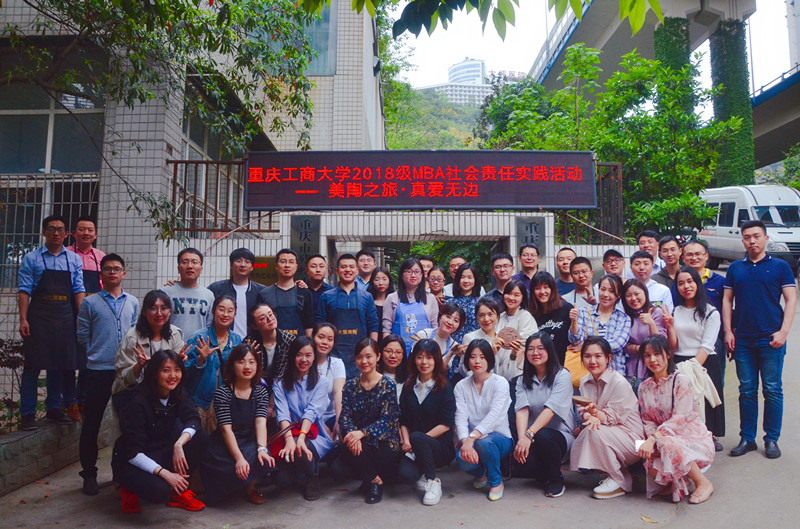 在第十二个世界自闭症日“消除误区,倡导全纳”的倡导下,为加强心智障碍人士与社会的融合度,4月12日下午,买球(中国)官方网站MBA2018级2班的全体学员来到位于重庆市渝中区李子坝正街的重庆市残疾人文化产业示范基地(渝中区阳光职业康复园)开展慈善互助活动,与自强不息的心智障碍朋友们合作完成人生第一件自己的陶艺作品。