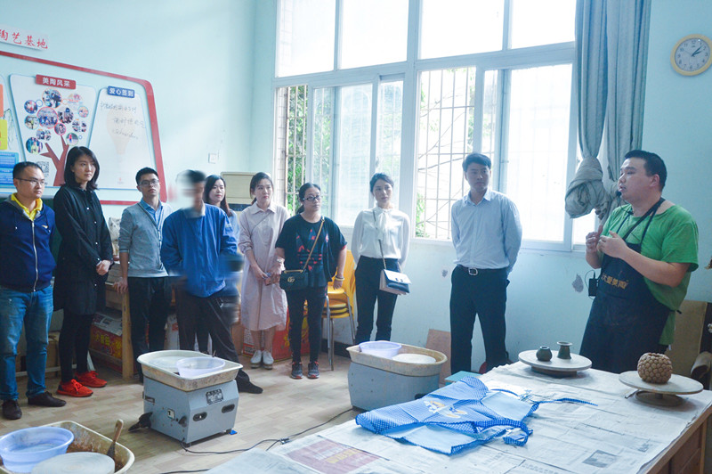 在基地行政总监刘美老师的带领下,MBA学员了解了基地的概况,参观了康复基地的整体布局、功能设置,以及心智障碍朋友们人性化的生活起居设施。陶艺制作负责人吴恕老师给我们介绍了陶艺制作流程。