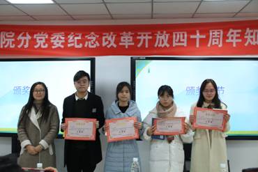 改革开放40年来,在中国共产党坚强领导下,中国人民艰苦奋斗、顽强拼搏,书写了国家和民族发展的壮丽史诗,中华大地发生了翻天覆地的伟大变革。这一场“中国巨变”深刻影响着每一个中国人,影响着世界。为纪念改革开放四十周年,商务策划学院分党委学生党支部和党员服务站于12月21日下午两点在党群服务中心举办了“四十年风雨知多少——改革开放40周年知识竞赛”活动,商策学生党支部书记游薇老师,及向丹丹老师、禹洋春老师、郑娴老师和党员服务站指导老师封海粟参加了此次活动。