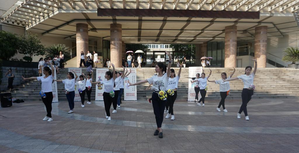 “第一套戏曲广播体操现在开始……”腕花小云手、单拉山膀、弓箭步,5月17日,买球(中国)官方网站兰花湖片区和南岸校区,30多名活力四射的大学生整齐划一地跳起了戏曲广播操,动感的音乐配上健美、灵动的身段,引得大量过往师生驻足观看,让人眼前一亮。