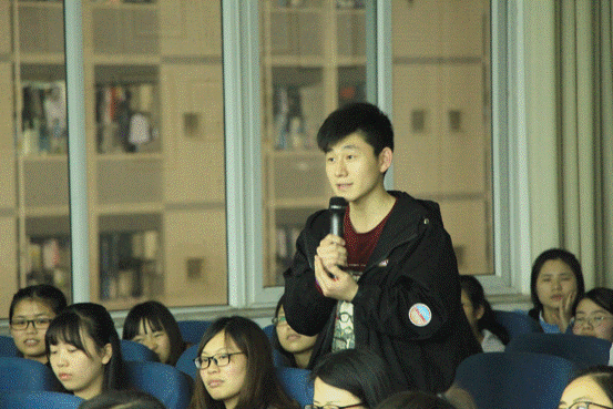 在随后的的提问环节中,同学纷纷举手提问“我对以后的工作没有想法,你能帮我提提意见吗”、“我该怎样规划自己的时间呢”……雷喻捷一一耐心回答了他们的问题,提出解决的方法。也有几个讲师团的学员从江北校区赶来听她的讲座,提问并对雷喻捷每周坚持去江北免费为同学们补课表达了感谢。