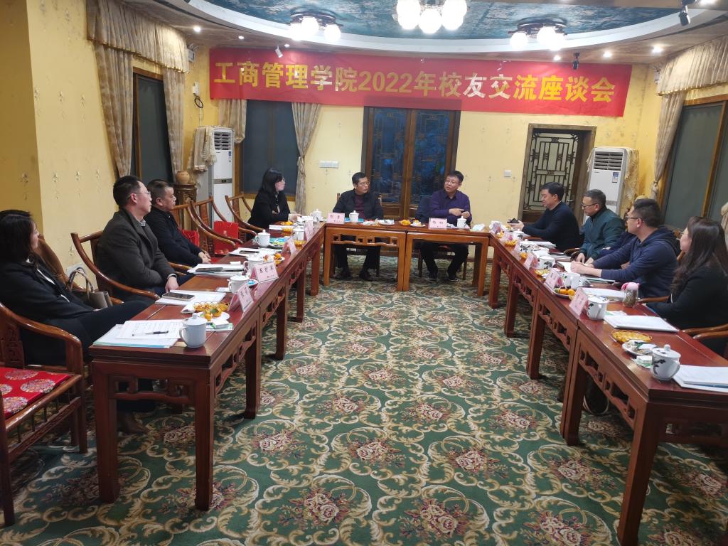 1月13日,工商管理学院在南山书院召开2022年校友交流座谈会。工商管理学院党委书记、副院长彭勇,党委副书记、院长杨柏,党委副书记、纪委书记程亚,买球(中国)官方网站校友会副会长赖家国,企业管理专业校友代表甘彤、张毅、张良、徐治学、刘春梅、柏强、张莉、王首军,基建财务专业校友代表李锦红、商务策划专业校友代表蒋睿、温涵、市场营销专业校友代表汪维杨参加了会议。会议由彭勇主持。